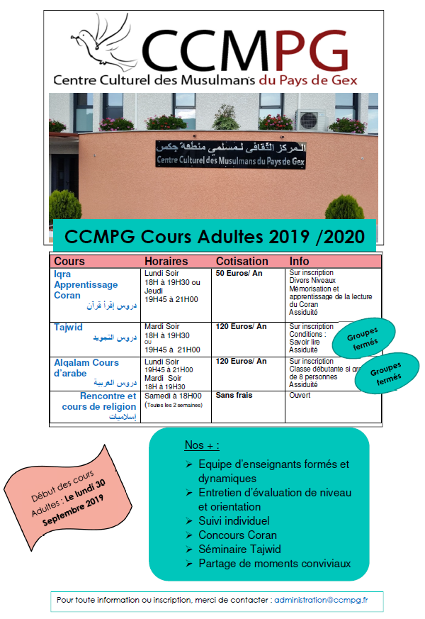 Le CCMPG est une association à but non lucratif. Le centre culturel a pour vocation de faire connaître l’islam. Pour cela, il propose des activités éducatives, religieuses, culturelles et sociales.